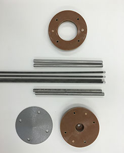 The prototype interstage is quite long for the diameter. My 70% model interstage is 6¾" overall with 6" rods plus an aft and forward end plate. Each plate is made from two ³⁄₁₆" thick canvas phenolic plate cut differently and then bonded together.