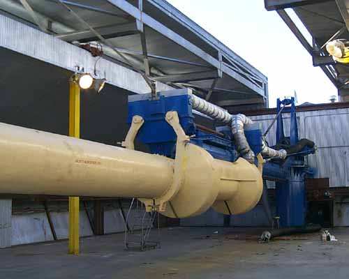 Most of our time was spent at pad 1 since this is the pad we will be launching from. Pad 1 (the "Universal Launcher") is a large rail which can be raised and rotated to provide a wide range of launch angles and directions. In the picture below you can see Dave Hall, Tom Tessier and Tom Rouse.