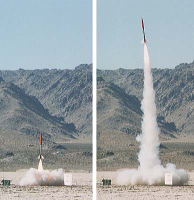 The rocket flew for the first time at Balls 98 (August 1st) and did beautifully on a small I motor. The second time, I flew it on a J350, making for a much more spectacular flight.