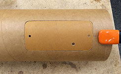 Remove the top, clean up the edges with a little sandpaper, and your cut is done. In the picture above, I've just cut out the cover mount from a scrap of airframe tube. If you need more than one mount, turn the tube segment around and cut another one.